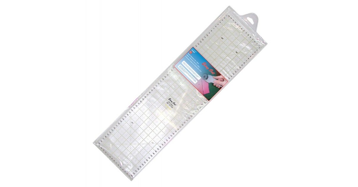 Coucou les couturières et patchworkeuses ! Cette règle à double bande est un outil génial pour couper des triangles et formes géométriques rapidement. En acrylique transparent, avec des marquages clairs pour les angles 45°, 60° et 90°. Taille : 15,2 cm de long (total). Le design antidérapant avec des picots intégrés maintient le tissu en place pendant la coupe au cutter rotatif. Tu peux découper des bandes, des triangles, des demi-carrés, des trapèzes... sans abîmer la règle grâce aux trous prévus. Parfaite pour le patchwork, le quilt, la création de vêtements. Elle permet de gagner un temps fou et d'avoir des coupes précises. Idéale pour les débutantes comme les expertes. Un accessoire indispensable dans ta boîte à outils de couture. Livrée seule (1 règle). Note : la couleur peut légèrement varier selon l'écran. Un achat malin pour booster ta créativité et la précision de tes projets !