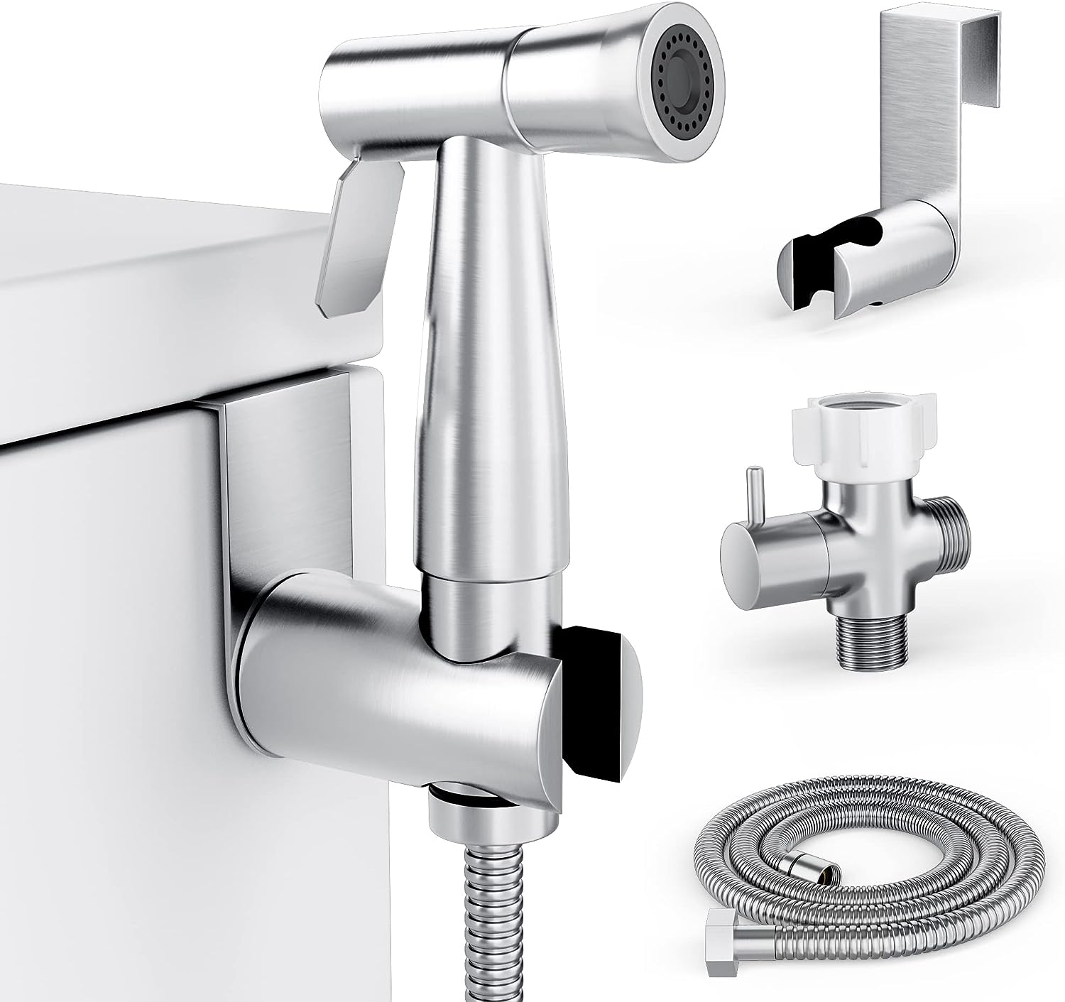 Pour une hygiène intime plus complète et économe en papier, ce kit de pulvérisateur bidet portable est une excellente alternative. Il se fixe facilement sur la valve d'arrivée d'eau des toilettes. Le tuyau à ressort est extensible jusqu'à 3 mètres, donc adaptable. Le spray en acier inoxydable a deux modes : un jet doux pour l'hygiène féminine ou personnelle, et un jet plus puissant pour nettoyer la cuvette. Tout est en acier inoxydable (spray, vanne d'angle, support à 360°) pour la durabilité et l'hygiène. Tu peux aussi t'en servir comme douchette pour le nettoyage de la salle de bain, pour rincer des couches, etc. Le kit comprend tout ce qu'il faut pour l'installation. Couleur noir. Pense à vérifier la compatibilité de ta valve avant !